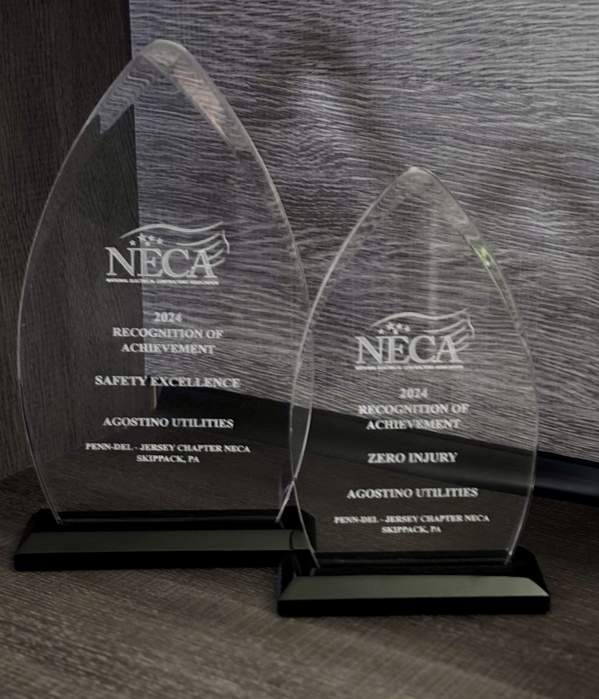 Agostino Utilities is proud to be recognized by the National Electrical Contractors Association (NECA) for consistently maintaining the highest standards of workplace safety and injury prevention.